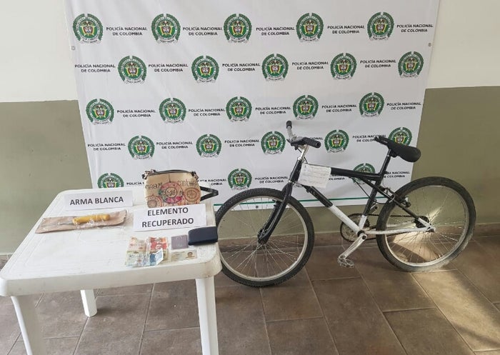 Una vez le practicaron el registro personal los agentes del orden le encontraron en su poder un arma blanca tipo cuchillo y una cantidad de elementos, los cuales al parecer le había hurtado a sus víctimas segundos atrás.