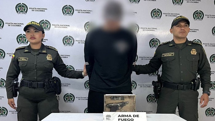 "Gracias a los planes focalizados de la Policía Nacional para contrarrestar delitos de alto impacto en la ciudad, fue capturado en flagrancia un hombre de 32 años en el sector conocido como la Milla de Oro, por ser el presunto responsable del delito de fabricación, tráfico, porte o tenencia de armas de fuego, partes y municiones. El procedimiento policial se llevó a cabo en la calle 60 con carrera 10 del barrio Arkamónica, donde uniformados de la patrulla de vigilancia realizaron un registro personal, en el cual le hallaron en la pretina del pantalón un arma de fuego tipo pistola con cinco cartuchos calibre 7.65. El capturado, junto con el arma incautada, fue puesto a disposición de la Fiscalía General de la Nación.", confirmaron desde Comunicaciones e la Metib