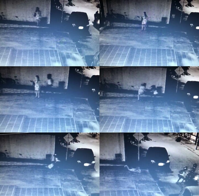 De acuerdo a lo que se puede observar en el video de una cámara de seguridad de la parroquia, la parrillera de la moto se bajó y de forma sigilosa abordó a su víctima por la espalda y en una rápida maniobra le agarró el bolso tirándola al suelo para despojarla de sus pertenencias mientras la arrastraba.