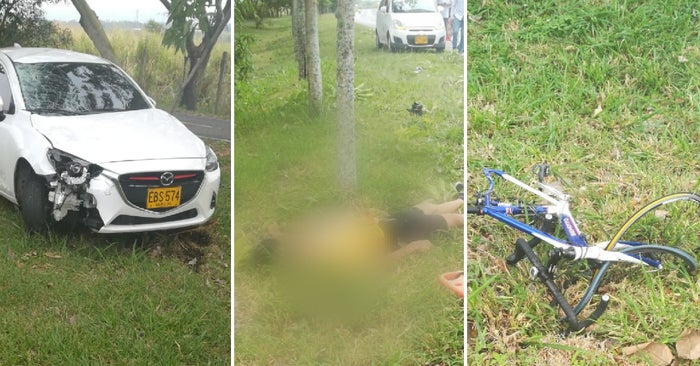 Tanto el vehículo como la cicla quedaron por fuera de la calzada, mientras el cuerpo sin vida de la víctima quedó tendido al lado de la carretera sobre un área verde.