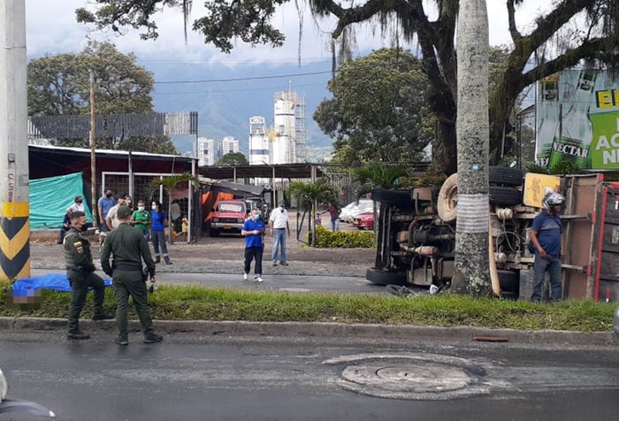 Estuvimos en el lugar de la noticia y confirmamos con versiones de algunos testigos, que la volqueta estaba parqueada en el semáforo y que de un momento a otro se devolvió, mientras le salían llamas de la parte delantera, arrastrando al motociclista, quitándole la vida de forma instantánea y causándole lesiones al acompañante se la víctima, una mujer de aproximados 40 años de edad.