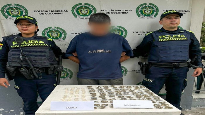 Ante esta conducta, los policías procedieron a realizarle un registro a persona, encontrando en su poder 160 dosis de marihuana, con un peso aproximado de 700 gramos, así como 293 dosis de bazuco, con un peso cercano a los 200 gramos, para un total superior a 450 dosis de sustancias ilícitas listas para su presunta comercialización.