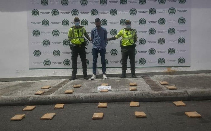 La Policía Nacional gracias a las labores de registro y control desarrollados por medio de la Seccional de Transito y Transportes en los principales ejes viales del país, logró la captura en flagrancia de un hombre y la incautación de 11 kilos de marihuana, sustancia avaluada en 33 millones de pesos aproximadamente.