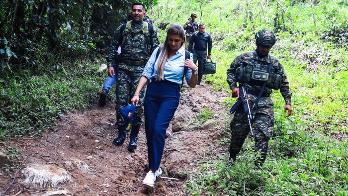 Este miércoles, la gobernadora Adriana Magali Matiz llegó al municipio de Rioblanco acompañada de un fuerte contingente de tropas del Grupo de Operaciones Especiales (GOES) de la Policía Nacional y del Batallón de Fuerza de Despliegue Rápido (FUDRA) del Ejército Nacional, como parte de un esfuerzo conjunto para combatir la creciente inseguridad en el sur del Tolima.