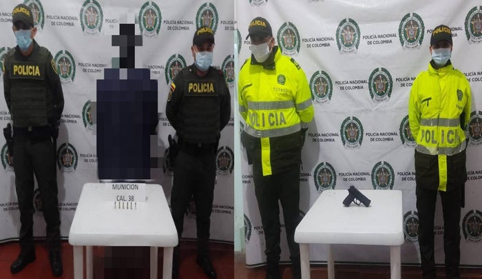 Debido a que en Colombia es delito llevar un arma sin su respectiva documentación, dos hombres fueron sorprendidos por las autoridades en el mismo municipio en dos operativos muy diferentes, en donde a uno se le halló en su poder munición para arma de fuego, y al otro un arma traumática avaluada en 700 mil pesos.
