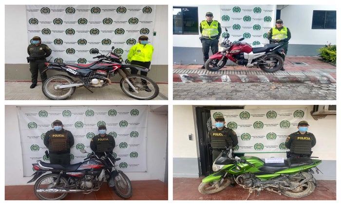 Continuando con el accionar contra el delito en todas sus modalidades, en las últimas horas la Policía Tolima con su personal de la unidad básica de investigación criminal sijin y uniformados de los cuadrantes de los municipios de Valle de San Juan, Saldaña, Chaparral y Rovira, en la ofensiva desarrollada contra el hurto automotor, lograron la recuperación de cuatro motocicletas en diferentes procedimientos.