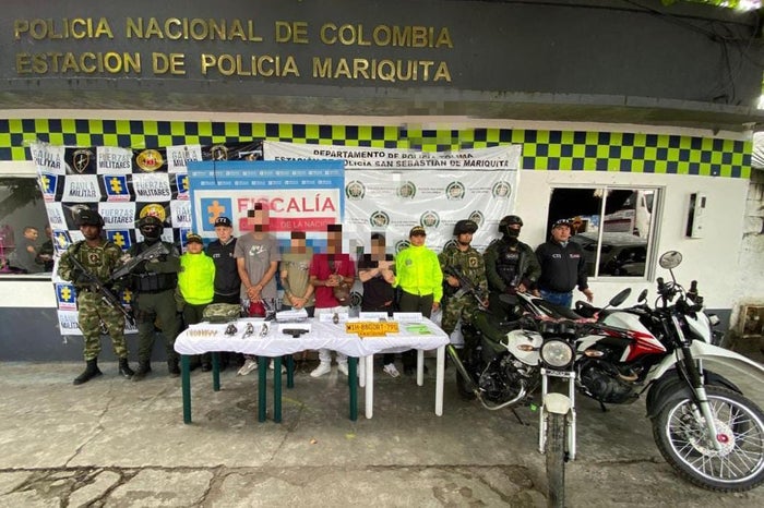 Los capturados junto a los elementos incautados fueron dejados a disposición de la Fiscalía No. 11 seccional de vida de la ciudad de Ibagué, donde deberán responder penalmente por los delitos de tráfico, fabricación y/o porte de estupefacientes, tráfico fabricación y/o porte de Armas de Fuego y Utilización ilegal de uniformes e insignias.