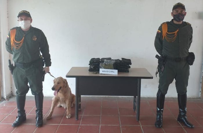 El procedimiento policial fue realizado en el barrio El Salado, por parte de los guías y su canino "Jefry", un ejemplar de raza Golden Retriever entrenado en detección de estupefacientes, quien dio la señal positiva en una de las encomiendas procedente del municipio de Candelaria Valle del Cauca; de inmediato los uniformados procedieron a verificar el contenido de la misma, lo que permitió encontrar un total 10.000 dosis de marihuana, distribuida en 20 paquetes respectivamente.