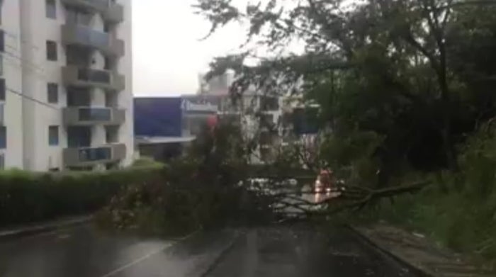 Por fuertes lluvias árbol cayó sobre la carrera 6a con calle 49 bloqueando la vía