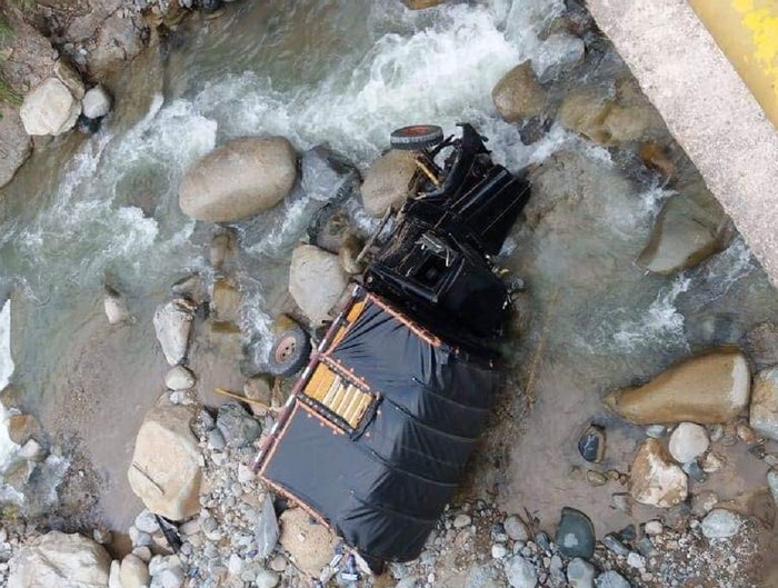 Este fin de semana se presentó una delicada emergencia en el sur del Tolima luego que un vehículo de carga cayera a un abismo y terminara en el fondo de un afluente hidrico, sufriendo millonarias pérdidas materiales.