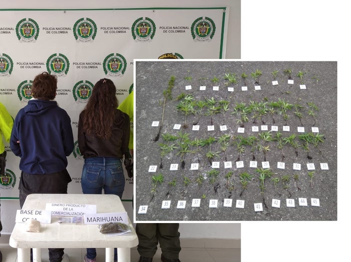 Como resultado de estos trabajos investigativos se pudo capturar a un hombre de 24 años y una joven de 18, quienes tenían dentro de sus casas 7.1 gramos de bazuco, equivalentes a cerca de 20 dosis, 25.3 gramos de marihuana equivalentes a cerca de 50 dosis, 54 plantas de marihuana y $62.450 en efectivo al parecer producto de la venta de las sustancias ilícitas.