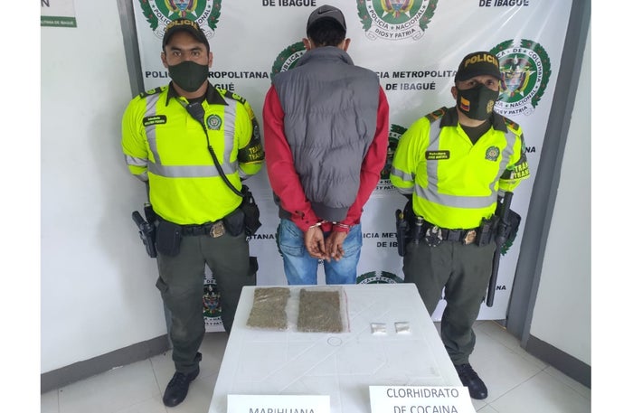 La detención del presunto traficante de sustancias ilícitas fue materializada por unidades adscritas a la Seccional de Tránsito y Transporte de la Policía Metropolitana de Ibagué, quienes lograron la captura en flagrancia de este joven sujetos de tan solo de 23 años en inmediaciones del kilómetro 35 de la vía Ibagué-Mariquita.