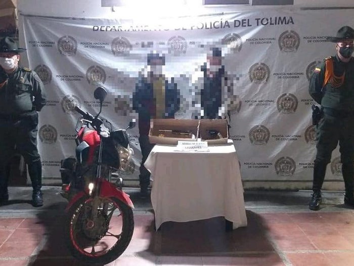 Se pudo establecer que los capturados, la motocicleta, los celulares, armas de fuego y cartuchos, fueron dejados a disposición de la Fiscalía 16 seccional de Ibagué, por el delito de fabricación, tráfico, porte o tenencia de armas de fuego, accesorios, partes o municiones.