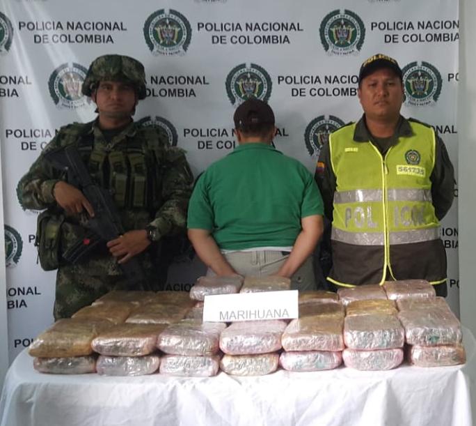 Allí fue interceptado un vehículo de transporte público tipo buseta, la cual cubría la ruta Planadas – Bogotá, lugar donde encontraron una mujer de 53 años, a quien se le halló en su poder una estopa de fibras color blanca y una bolsa negra plástica, la cual en su interior contenía 45 paquetes prensados de Marihuana, con un peso aproximado de 24 kilos equivalentes a cerca de 62 mil dosis.