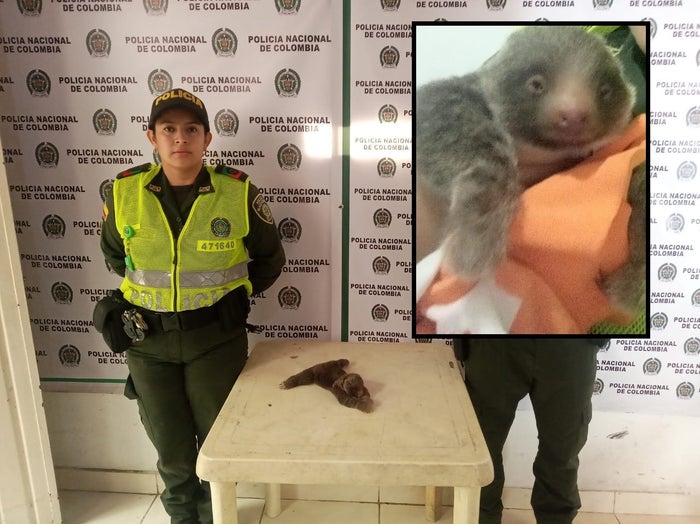 Policía rescató a un oso perezoso bebé que estaba en riesgo de morir