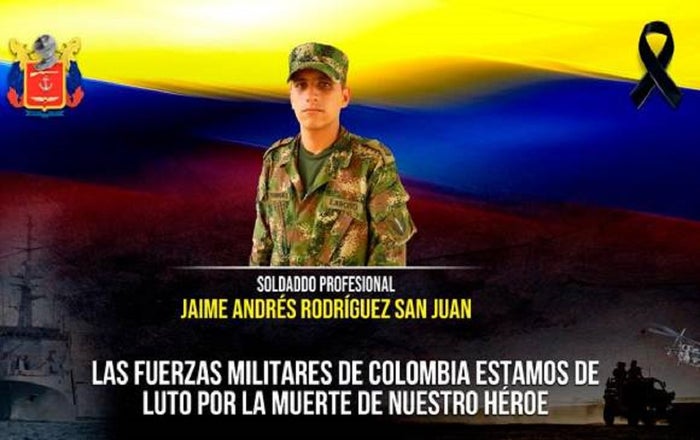 En este último hecho que genera zozobra entre la comunidad, un soldado profesional adscrito al Batallón de Operaciones Terrestres No. 2 del Comando Específico del Caguán, identificado como Jaime Andrés Rodríguez San Juan murió de manera instantánea tras ser impactado por artefactos explosivos que habrían sido dejados en una zona de la vereda El Rubí, ubicada entre los municipios de San Vicente del Caguán (Caquetá) y La Macarena (Meta).