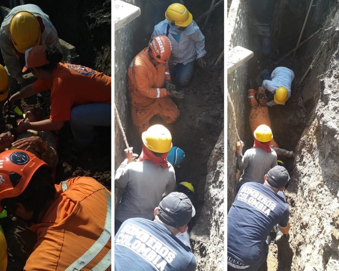 Según se pudo establecer, los dos hombres eran José Gómez, de 65 años de edad, y Jeison Avendaño, de 28, los cuales laboran en la construcción de un muro de contención, cuando de repente, un alud de tierra los cubrió hasta la mitad de sus cuerpos, quedando atrapados dentro de una zanja.