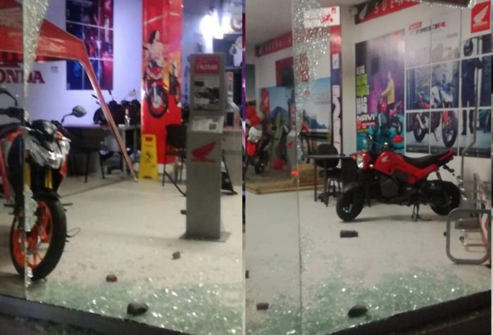 Es de recordar que algún grupo de manifestantes rompieron los vidrios locales comerciales en la 37 con Quinta, después descendieron dos cuadras, y sobre los locales de motos se llevaron cascos y dos motocicletas, que como indicó el secretario Portela, la recuperaron a las pocas cuadras.
