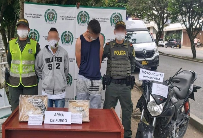 Cabe anotar que, gracias a la rápida reacción de los uniformados de la METIB, se pudo impedir que escaparan los sujetos identificados como Sebastián Cruz Guerra y Cristian Fernando Mora Imbachi, a quienes les hallaron un arma de fuego tipo revolver y un arma de fogueo tipo artesanal.