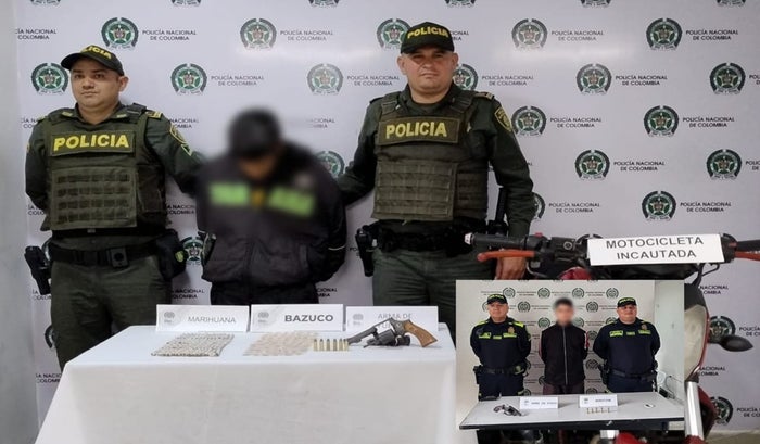 Durante el registro personal, se encontró que el tripulante de la motocicleta, un menor de edad de 15 años, llevaba consigo un bolso de color negro que contenía un arma de fuego tipo revolver, así como 200 gramos de marihuana y 100 gramos de bazuco, los cuales fueron incautados. El conductor de la motocicleta, un hombre de 37 años de edad, fue detenido en el lugar.