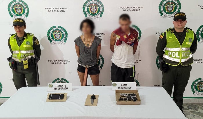 Los dos capturados se identificaron ante las autoridades como Diego Fernando Guevara, de aproximados 50 años de edad y Achuri Díaz, de 22 años, quienes fueron trasladados a las urgencias del Hospital San Francisco para su valoración médica y posteriormente al Cai Variante, para ser judicializados por los delitos de violencia contra servidor público y hurto agravado y calificado.