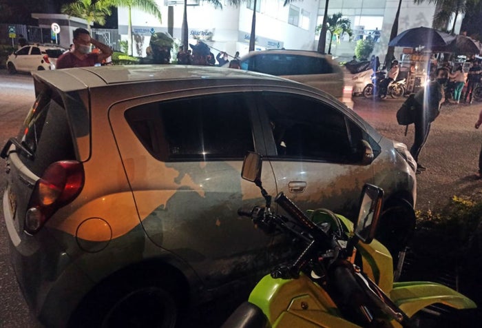 “Vi cuando este carro Spark GT empezó a dar reversa pero pues dije, no demora en parar, cuando no fue así, continuó su marcha y tomaba más velocidad, me dio desespero, miraba para todos lados, para advertir a alguien que fuera a pasar para que no fuera arrollado; el carro siguió para atrás hasta chocarse con la rotonda, corrí de una para mirar si había alguien dentro del vehículo, lo primero que creí es que al conductor le dio un infarto”, manifestó Andrés, un motociclista que esperaba a su esposa a esa hora de la noche.