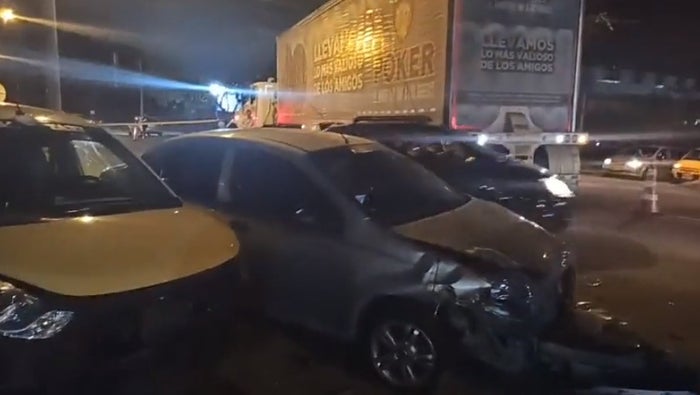 Un aparatoso siniestro vial tuvo lugar sobre las 10:00 de la noche en la vía que da la salida de Ibagué hacia Rovira, a pocos metros de las instalaciones de Bavaria, donde un particular, un automotor de servicio público y un vehículo de carga pesa chocaron entre sí, dejando como saldo varias personas lesionadas y caos en la movilidad.