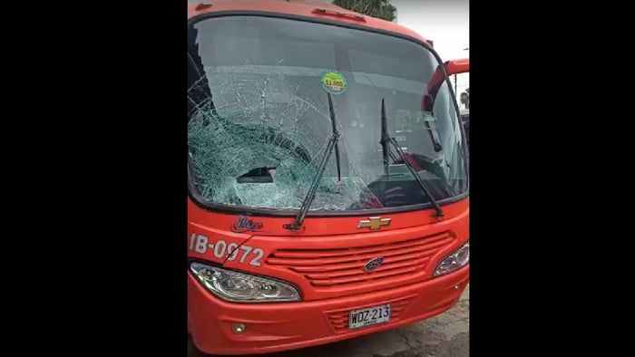 “Llegando al sector de las Margaritas, una cuadra más abajo de Homecenter por el carril subiendo, veo que hay un hombre al borde de carretera que estaba de espaldas, y a lo que me acerco el sujeto me lanza un bloque de cemento que entro por la parte del vidrio y daño el letrero de la ruta y cayó al piso la tapa del motor. Donde me agarre ese bloque de cemento me hubiese fracturado o quien sabe qué habría pasado”, dijo el afectado a La Cariñosa 1.420 AM.