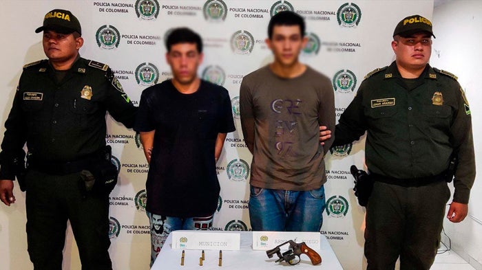 Los policías iniciaron una persecución que culminó con la captura de Johan Prada Chilatra, de 23 años, residente en Girardot, Cundinamarca, y David Pinto, de 22 años, residente en Ibagué. En la captura se incautó un revólver calibre 38 con tres cartuchos y tres vainillas en su recámara.