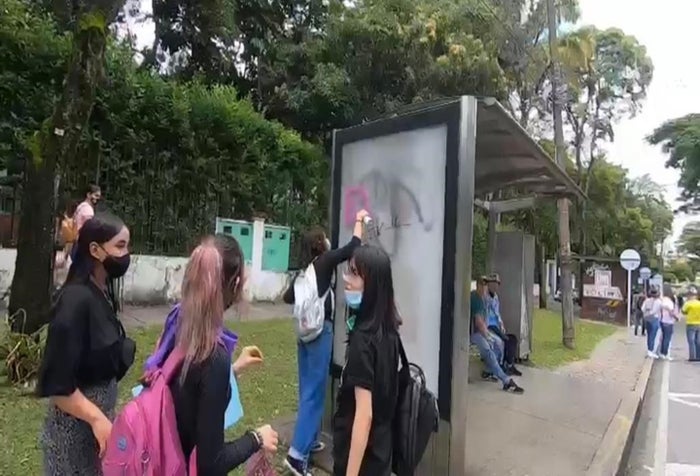 Los hechos se presentaron ayer miércoles 28 de abril en horas de la mañana, cuando un ciudadano se percató de una acción indebida por parte de un grupo de jóvenes contra un mobiliario urbano, este sujeto las reprendió de una forma muy amable y respetuosa, pero las jóvenes infractoras simplemente hicieron caso omiso.