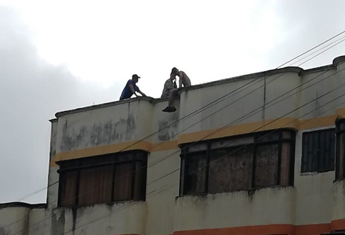 En primera instancia fue divisado en esa terraza por personas y conductores que pasaban por la zona, quienes observaron al hombre ‘encaramado’ en la azotea, amenazando con lanzarse al vació. De un momento a otro, muchos comenzaron a llegar para gritarle al hombre que no lo hiciera.