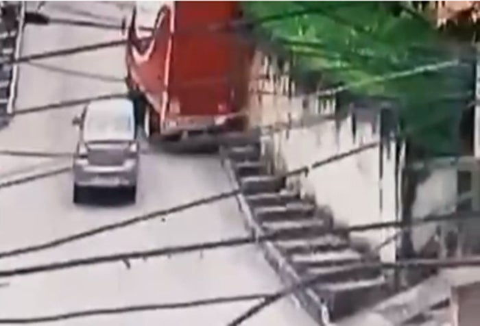 También se logró evidenciar en el material fílmico que detrás del rodante de carga pesada, de placa -266, subía un carro particular, cuyo conductor de manera ágil al ver que se le venía encima este automotor comenzó a retroceder, por fortuna sin impactar a un motociclista que iba ascendiendo por ese mismo carril.