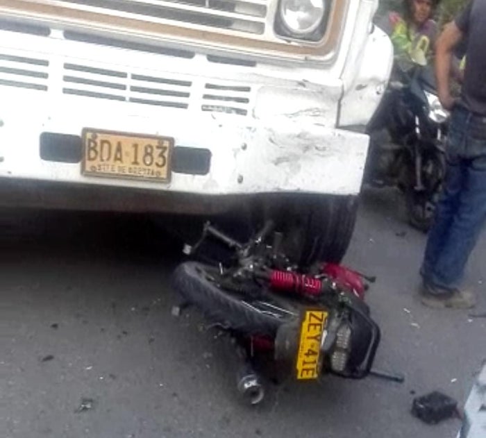 En las primeras informaciones que se conocen, el hecho tuvo lugar en la vía que conecta el casco urbano de Ibagué con el corregimiento de San Bernardo, punto donde un vehículo de carga pesada tipo volqueta de color blanco y placa BDA 183 chocó contra una moto roja con negro de número de matrícula ZEY 41E.