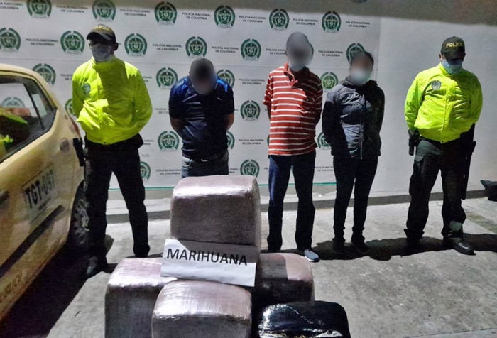Según el coronel Alexander Venegas, comandante operativo de la Metib, “La Policía Nacional por medio de las actividades de registro y control realizadas de manera permanente en el área metropolitana de Ibagué con el fin de reducir la comercialización de estupefacientes en menores cantidades, logró la captura en flagrancia de dos hombres y una mujer que se movilizaban en el vehículo tipo taxi en la vía Ibagué-Espinal sector conocido como el Puente de la Vida, cuando son interceptados por nuestros uniformados quienes les realizan un registro hallándoles en su poder cinco bloques rectangulares forrados en plástico con 34.104 dosis de marihuana y 100 mil pesos en efectivo”, dijo.