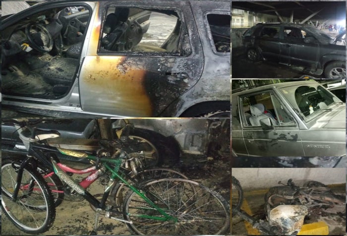 Información suministrada a las noticias de Alerta Tolima, La Cariñosa 1.420 AM da cuenta que a tempranas horas del día dieron aviso a los organismos de emergencia de la ciudad, en este caso al Cuerpo Oficial de Bomberos, quienes llegaron con una máquina de la Estación Jardín, (Móvil 13) con dos unidades bomberiles para atender la situación donde dos de los tres particulares se quemaron en un 90 por ciento, otro automotor afectado por las llamas en su pintura y otras partes, además de una motocicleta de la Policía que había sido asignada a un teniente de esta institución que a su vez es el dueño de uno de los particulares afectados. Sumado a esto varias bicicletas que estaban en la zona.