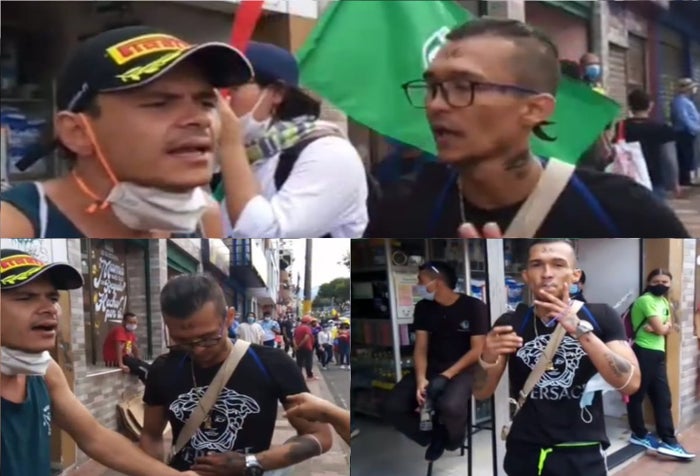 En dicha transmisión se observa a dos hombres, que, según la denuncia, estos sujetos habían amenazado de muerte a una mujer que indicó, “Ese hombre me amenazó con un cuchillo y me trató de guerrillera. Tienen cuchillos por toda la cintura y además me dijo que era seguidor de Álvaro Uribe”, caso que llenó de indignación a muchos de los marchantes.