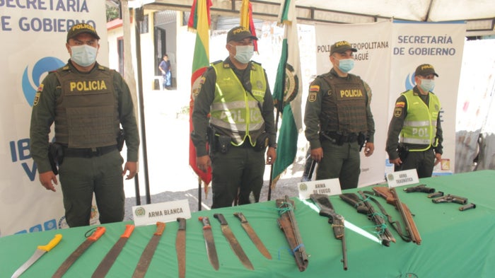 Cabe recordar que, en Ibagué, estas jornadas ya se han realizado y la más reciente fue reportada por La Cariñosa el pasado 14 de enero. El equipo de prevención ciudadana de la Policía, esa vez llegó hasta el barrio San José, ubicado en la cuidad de Ibagué, donde se realizó un nuevo plan desarme, con el que se logra sacar de las calles por lo menos 15 armas, entre ellas de fuego, traumáticas y fogueo en un buen acto de voluntad.