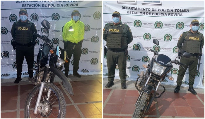 Contra el robo de las motocicletas, Policía y sus demás patrulleros y cuadrantes de la estación de Rovira, hacen horas intensivas de control, donde gracias a esto la unidad básica de investigación criminal Sijín, en hechos aislados lograron la recuperación de dos motocicletas.