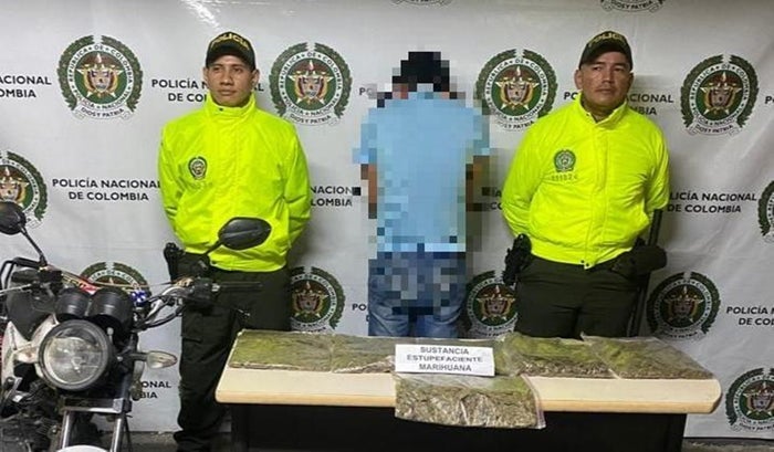 El hecho se presentó en horas de la noche, gracias a las labores efectivas de Policía Judicial e inteligencia que permitieron que sobre la calle 4 carrera 27 barrio Las Vegas del municipio de Melgar, se lograra la captura en flagrancia de un individuo de 25 años y la aprehensión de un menor de 17 años, los cuales se movilizaban en una motocicleta de mediano cilindraje color blanco, donde al momento de realizarles registro e identificación a personas, se les halló al interior de un bolso, 06 bolsas grandes plásticas, tipo ziploc, las cuales contenían cerca de 3 kilos de marihuana, equivalentes a cerca de 7 mil dosis, avaluados por lo menos en $3.000.000.