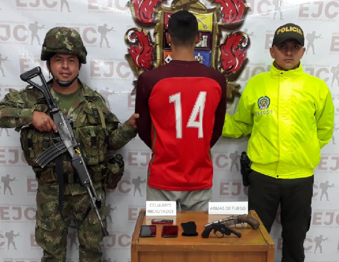 El hombre, al solicitarle los documentos que acreditan la legalidad de los elementos bélicos, no suministro a las autoridades dichos salvoconductos, razón por la cual fue capturado de inmediato, siendo dejado a disposición de la fiscalía 56 seccional, donde se le señaló del delito de tráfico fabricación o porte de armas de fuego y municiones y luego de audiencia pública fue cobijado con medida de aseguramiento en centro penitenciario y carcelario.