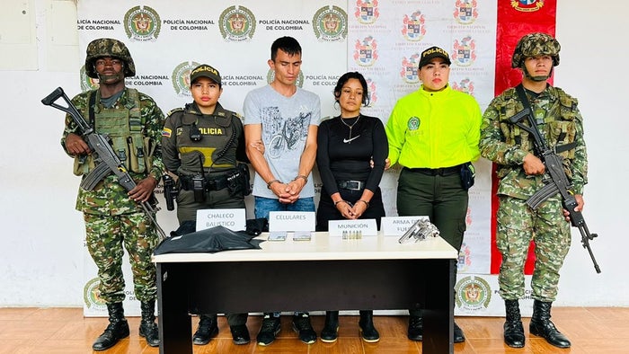 Se pudo establecer que en este 2024, alias Tatiana se vinculó al Frente Gerónimo Galeano, junto al sujeto capturado. A estas personas se les incautó un revólver, seis cartuchos, dos celulares y dos chalecos antibalas.