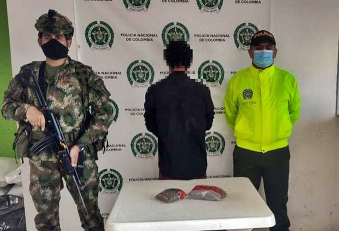 “El hecho se presentó mediante un fuerte despliegue desarrollado en medio de una diligencia de allanamiento y registro a una residencia ubicada en el sector rural vereda Guasimal de esta localidad, lugar donde fue capturado en flagrancia esta persona a quien se le halló al interior del inmueble 204.6 gramos de marihuana, equivalentes a cerca de 400 dosis”, puntualizó el mayor Noreña.