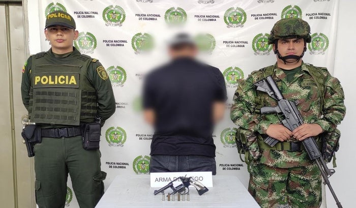 Según el coronel Néstor Cepeda, comandante Detol, “Continuando con los operativos permanentes enfocados en el marco del plan cazador contra el porte ilegal de armas de fuego, la Policía Tolima con uniformados de los cuadrantes de la estación de Policía Rioblanco en conjunto con personal del Ejercito Nacional, en las últimas horas lograron la captura de un sujeto y la incautación de un revólver con munición”.