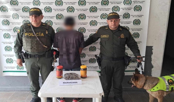 Y agregó, “En una demostración impresionante de habilidad y entrenamiento, Titán identificó la presencia de sustancias ilegales en la zona, lo que llevó a la detención de un individuo de 25 años. Tras una inspección minuciosa, realizada con la asistencia del can, se descubrió un total de 4 kilogramos de marihuana cuidadosamente ocultos en dos frascos de café y una bolsa hermética. Estas cantidades podrían haber sido distribuidas en aproximadamente 4000 dosis del estupefaciente”, dijo.