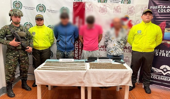 En una acción coordinada entre la Sijin e Inteligencia de la Policía Tolima, el batallón Patriotas del Ejército Nacional y la Fuerza Aeroespacial Colombiana Cacom 4, se logró la captura de cuatro individuos y la incautación de una importante cantidad de municiones en Fresno, Tolima.