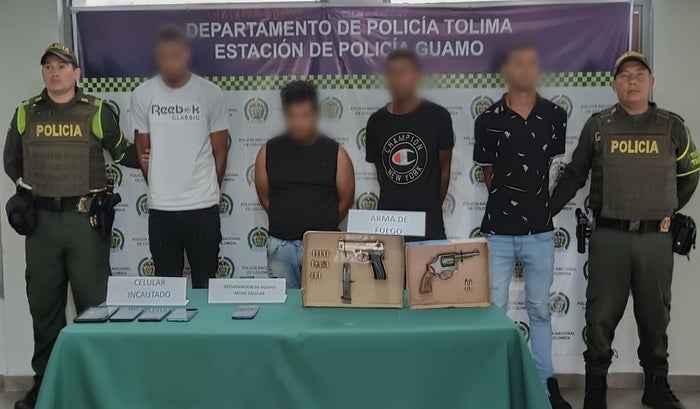 La Policía Tolima, con su personal de la seccional de tránsito y transporte, logró la captura de cuatro sujetos, la incautación de un arma de fuego, un arma traumática y la recuperación de un camión con su carga.
