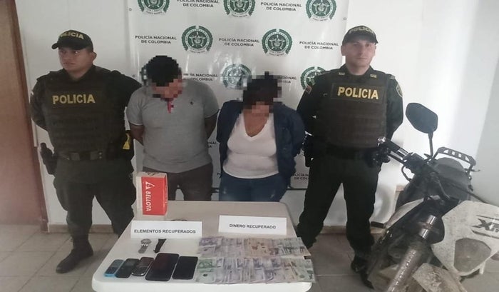 Así lo informó el coronel Néstor Cepeda, comandante Detol, indicando que “En desarrollo a la ofensiva contra el hurto en todas sus modalidades, en las últimas horas la Policía Tolima con su personal de los cuadrantes de la estación de Policía Dolores en articulación con La Subestación de Policía La Arada, mediante un efectivo plana candado, lograron la captura de una pareja, la inmovilización de una motocicleta y la recuperación de gruesa suma de dinero con elementos”.