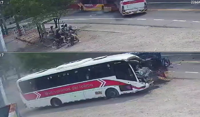En las imágenes de cámara de seguridad que se han conocido, se como el bus de la Universidad va saliendo de lo que parece un parador, para incorporarse a la vía y continuar su camio, cuando aparece el bus de transporte intermunicipal de la empresa Rápido Tolima a bastante velocidad que no le dio tiempo a frenar o cambiar su curso e impactó al bus de la Universidad, regresándolo hacia el parador.