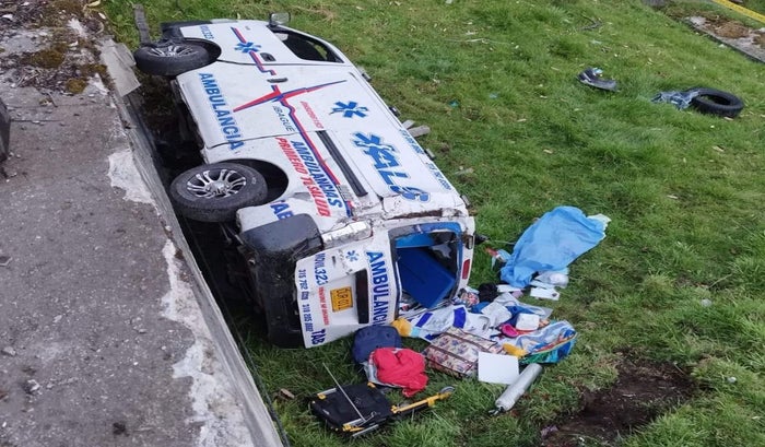 El vehículo medicalizado fue impactado en la parte trasera, provocando que cayera a un abismo. Conductor de Turbo causó el accidente.