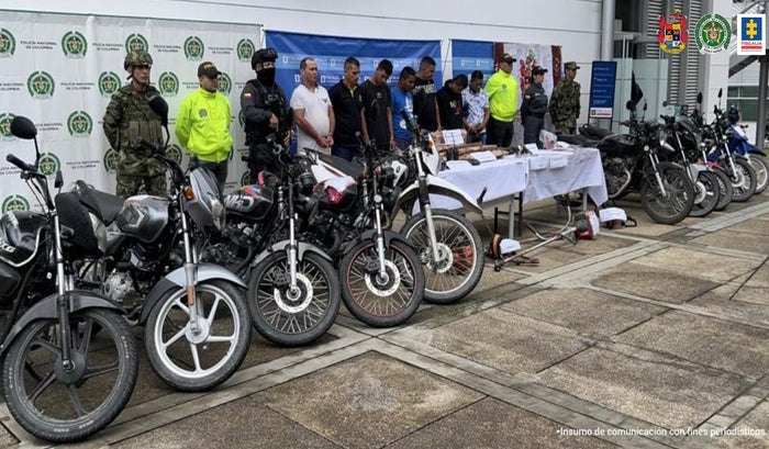 Así mismo, se logró la incautación de elementos materiales probatorios y evidencia física como 10 motocicletas con fines de comiso, cuatro armas de fuego y municiones, entre ellas una escopeta artesanal, un calibre 16 milímetros y una pistola traumática.
